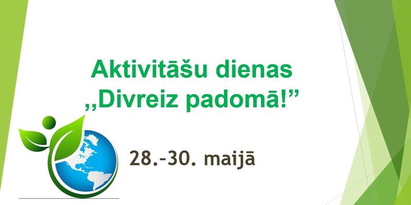 28.maijā licejā notika aktivitāšu diena “Divreiz padomā!”, kuras mērķis ir veicināt zaļo un ilgtspējīgāko domāšanu, paplašinot skolēnu priekšstatu par dabas resursu izmantošanas efektivitāti. Dienas laikā tika īstenoti daudzveidīgi pasākumi un nodarbības.