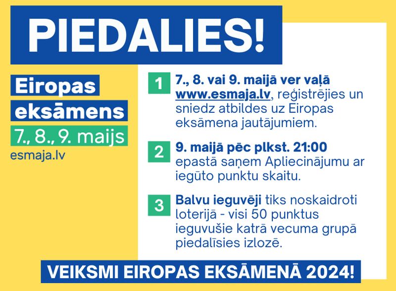 Uzmanību! 7., 8., 9.maijā var piedalīties Eiropas eksāmenā!
