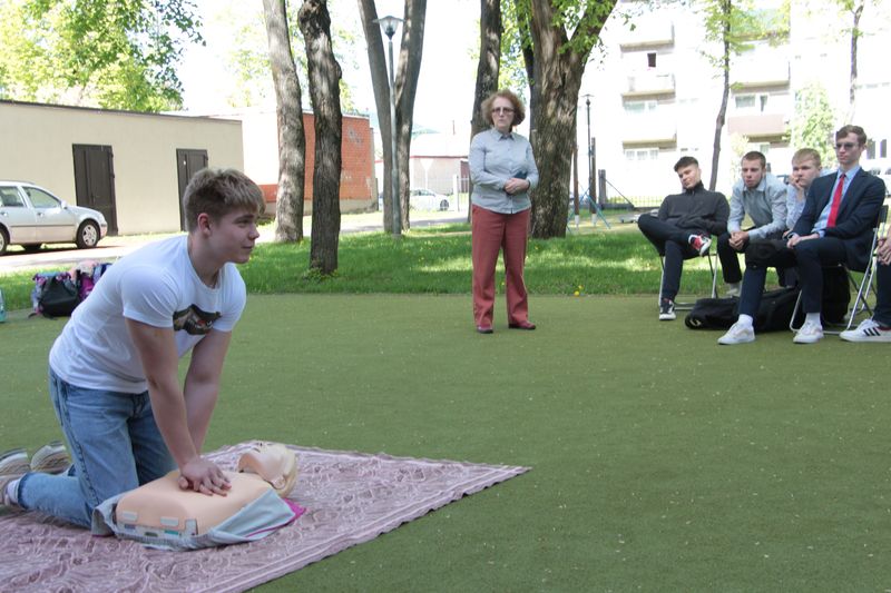 11. a klasē notika “zaļā” klases stunda sadarbībā ar bioloģijas priekšmetu par tēmu “Pirmās medicīniskās palīdzības sniegšana”. Skolēni veica mākslīgo elpināšanu un netiešo sirds masāžu uz manekena. Tika pārrunāta rīcības kārtība traumu un apdegumu gadījumos.