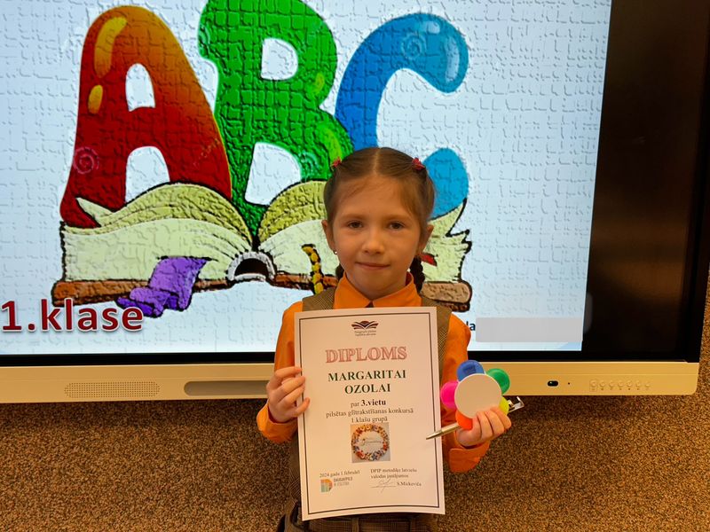 1.klases skolniece Margarita Ozola ieguva 3. vietu pilsētas glītrakstīšanas konkursā.