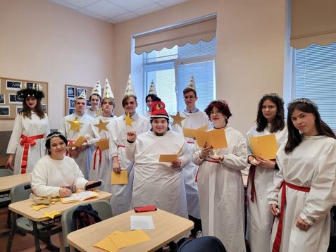 13. decembrī Zviedrijā tiek svinēta Lūcijas diena, kas iezīmē Ziemassvētku sākumu. Lūcijas un viņas procesijas misija ir gada tumšākajā laikā nest gaismu, labestību un cerību uz labāko. Mūsu skolas skolēni, kas mācās zviedru valodu, šogad arī nosvinēja Lūcijas dienu, 15. decembrī apstaigājot ar Lūcijas procesiju skolas ēku un iepazīstinot citu klašu skolēnus ar šo jauku zviedru tradīciju.