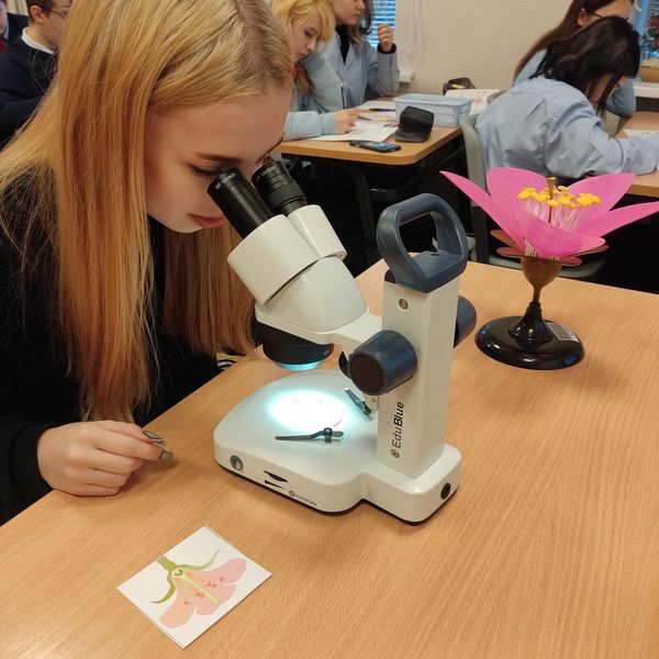 13. decembrī 9. plūsmas skolēni bioloģijas stundās izpildīja laboratorijas darbu "Zieda uzbūve". Skolēni pagatavoja ziedauga astromērijas zieda preparātu un aplūkoja to stereomikroskopā. Stereomikroskopā ļoti labi bija saskatāmi sēklotnē guļošie sēklaizmetņi un putekšņlapās esošie putekšņi. Skolēni darba lapā attēloja preparējamā zieda uzbūvi bioloģiskajā zīmējumā, sastādīja zieda formulu un uzzīmēja zieda diagrammu.