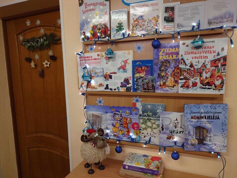 Skolas bibliotēkā tika noformēta krāsaina izstāde “Decembris – ZIEMASSVĒTKU grāmatu mēnesis”.