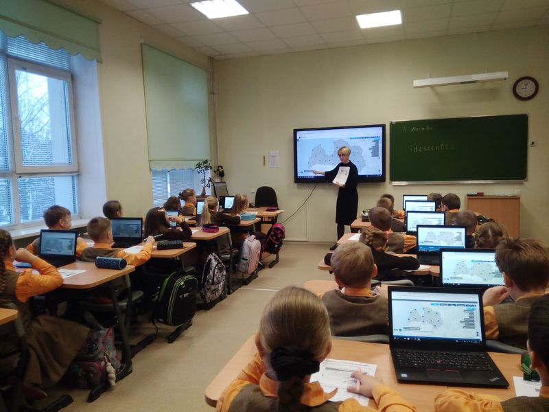 2.klases skolēni dabaszinību stundā pētīja laikapstākļus un meklēja tīmeklī informāciju par laikapstākļu prognozi.