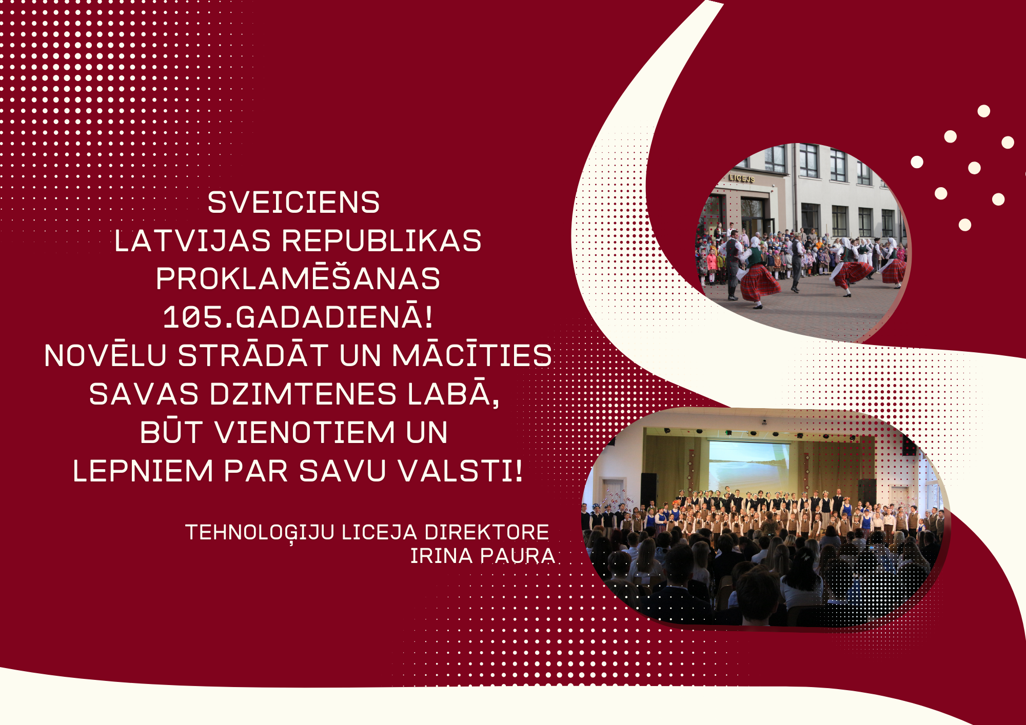 Latvijas Valsts prezidents Edgars Rinkēvičs sveic Daugavpils Tehnoloģiju vidusskolas liceja kolektīvu Latvijas Republikas proklamēšanas 105.gadadienā!