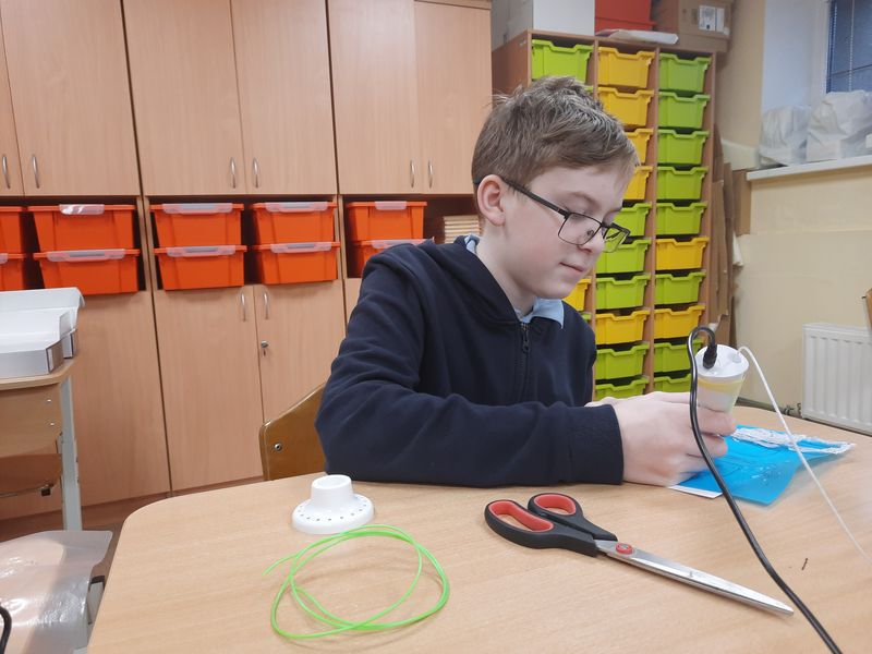 Dizaina un tehnoloģiju stundās 5.klases skolēni, radoši strādājot ar 3D pildspalvām, veidoja mobilo telefonu modeļus un dzīvnieku figūras.