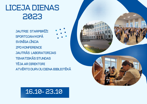 16.-23.oktobrī Tehnoloģiju licejā notiks svinīgā nedēļa “Liceja dienas 2023”.