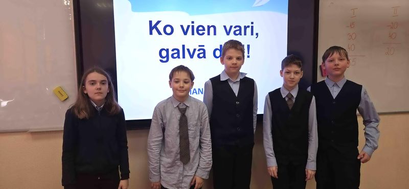 Matemātikas un finanšu pratības nedēļas ietvaros 2026. gada 19. martā 5. klasē notika komandu spēle “Ko vien vari, galvā dari!”. Stundu vadīja skolotāja Olga Kaminska.