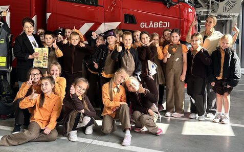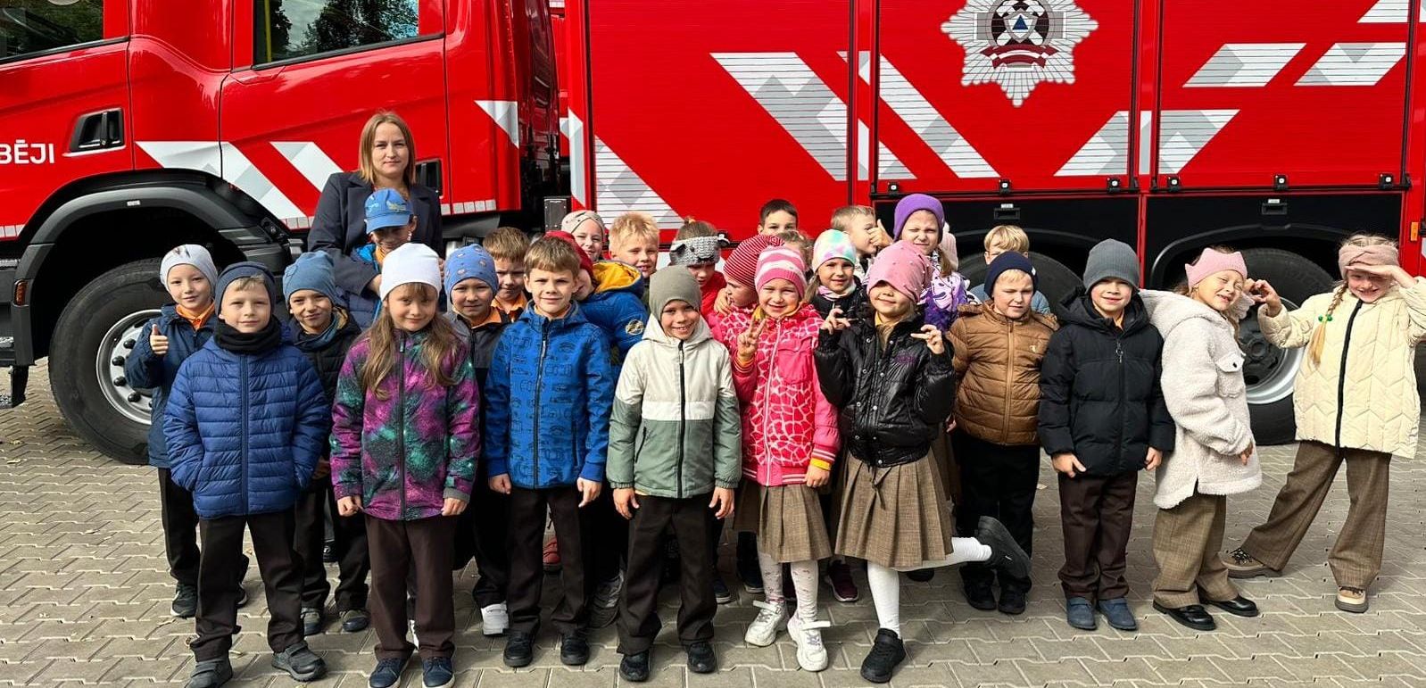 Mūs sagaidīja ugunsdzēsēji, kuri pastāstīja par ikdienas darbu, kā arī atgādināja svarīgākos noteikumus ugunsdrošībā – kā rīkoties, ja rodas bīstama situācija, un kā pasargāt sevi un citus.