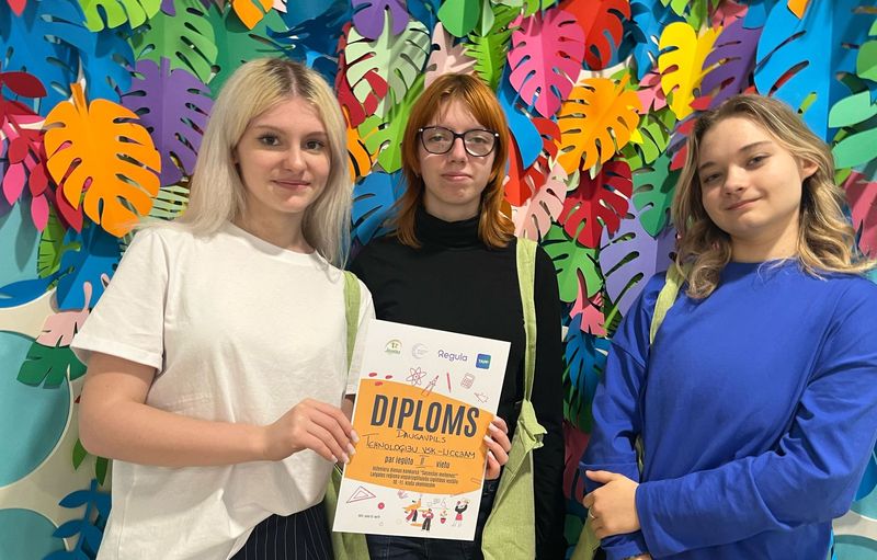 Daugavpils Tehnoloģiju vidusskolas-liceja komandas dalībnieces – Viktorija Gabrena, Valerija Makarova un Evelīna Koļesņika – demonstrēja izcilas zināšanas un prasmes, veicot dažādus tehniskos un radošos uzdevumus: būvējot tiltus, zīmējot robotus ar virtuālās realitātes brillēm un pārbaudot dokumentu autentiskumu.