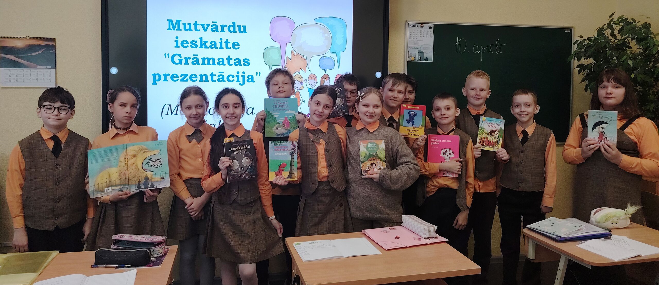 4.plūsmas skolēni latviešu valodas stundās apmeklēja skolas bibliotēku, kur skolas bibliotekāre Jeļena Kolpakova bija sagatavojusi viņiem grāmatu izstādi. Skolēni aplūkoja grāmatas, izlasīja grāmatas vākos anotācijas un izvēlējās sev grāmatas. Tālāk skolēnu uzdevums bija izlasīt izvēlēto grāmatu un sagatavot tās prezentāciju. Vienā skaistā pavasara dienā skolēni ar aizrautību dalījās savos iespaidos par izlasītajām grāmatām. Uzstāšanās laikā katrs skolēns pilnveidoja prezentēšanas prasmi un stāstīja par izlasīto grāmatu. Skolēni secināja, ka grāmatu lasīšana palīdz labāk apgūt valodu, paplašina vārdu krājumu, palīdz izzināt pasauli, labāk saprast cilvēku attiecības, samazina stresu un tā ir lieliska atpūta un izklaide.
