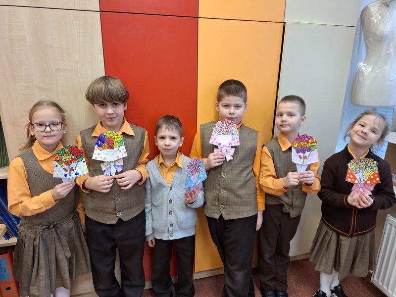 Pirmās plūsmas skolēni dizaina un tehnoloģiju stundās gatavoja rožu pušķi Starptautiskajai sieviešu dienai.