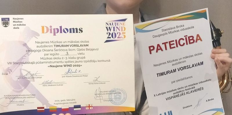 26. februārī Timurs Vorslavs (4.plūsma) piedalījās 8 Starptautiskajā pūšaminstrumentu spēles jauno izpildītāju konkursā "Naujene WIND 2025" un ieguva 3 vietu.
