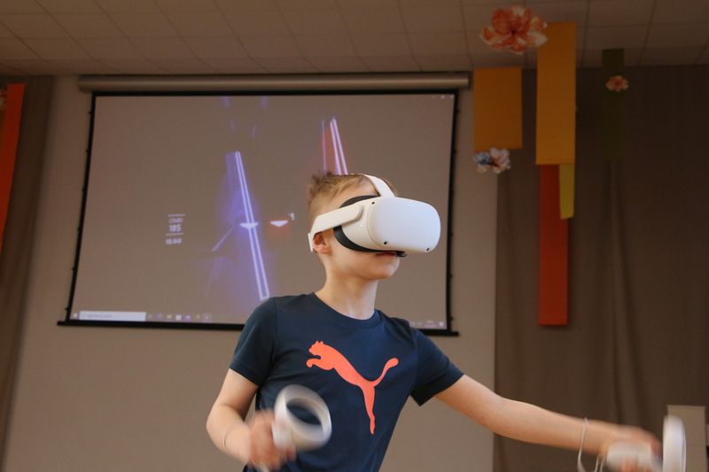 Tehnoloģiju dienu ietvaros licejistiem bija iespēja gremdēties virtuālās realitātes pasaulē un izmēģināt savus spēkus populārajā spēlē “Beat saber”. “Beat saber” spēles turnīrs notika sporta stundās.