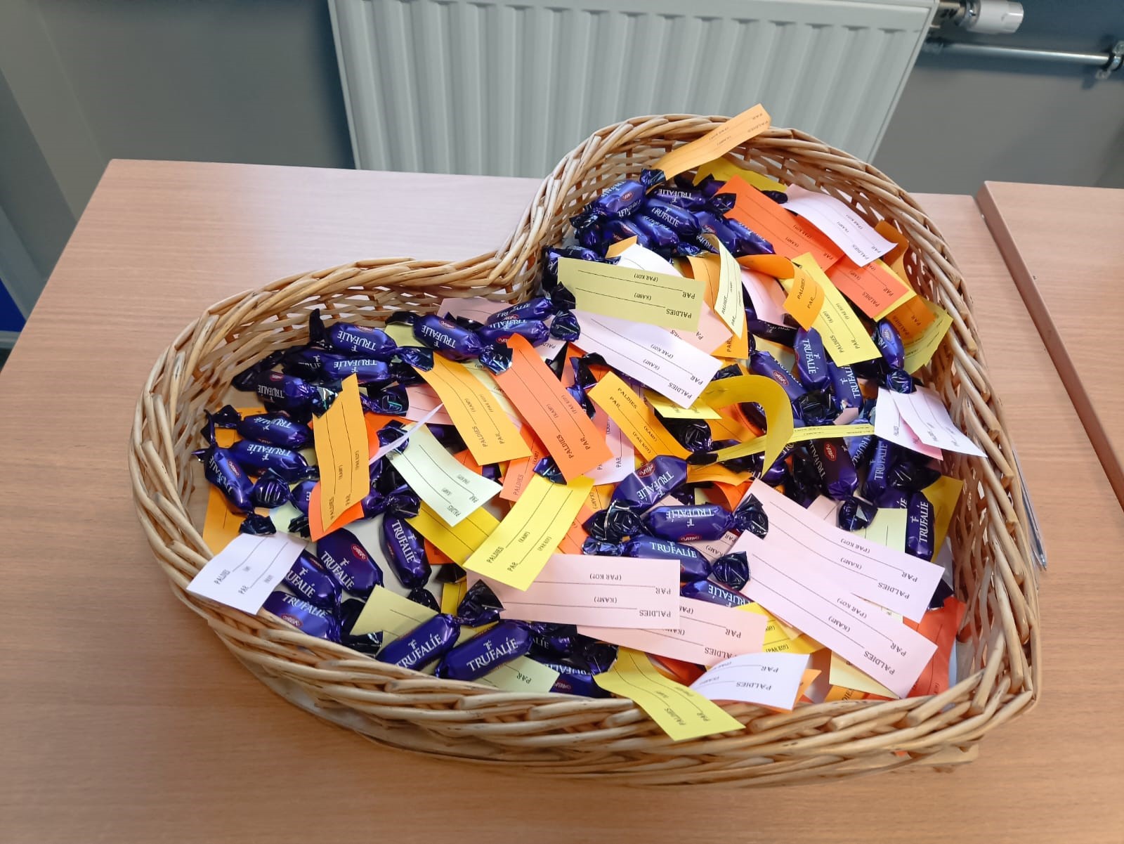 No paša rīta licejā bija jūtama neparasta rosība. Licejisti dāvināja pateicību skolas darbiniekiem, skolotājiem, klasesbiedriem, viens otram, noplēšot vajadzīgo zīmīti no jebkura kabineta durvīm. Lielajā starpbrīdi tika piedāvāta iespēja izdomāt un uzrakstīt īsu vēstulīti uz krāsainas lapiņas ar piestiprinātu konfekti. Daži skolēni sagatavoja pateicības vārdus ar konfekti un nesa to saviem vecākiem!