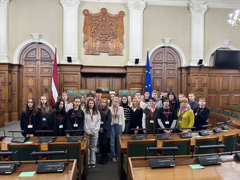 Lai tuvāk iepazītu Latvijas parlamenta darbu, kā arī Saeimas nama arhitektūru un vēsturi, 20. decembrī 9. plūsmas skolēni kopā ar sociālo zinību skolotāju Marinu Drozdu un kuratori Ludmilu Demidu devās ekskursijā uz Rīgu.