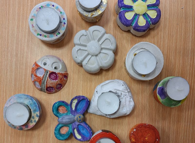 Dizaina un tehnoloģiju stundās 4.klases skolēni veidoja oriģinālus svečturīšus no ģipša. Skaistie, unikālie izstrādājumi rotās viņu mājas.