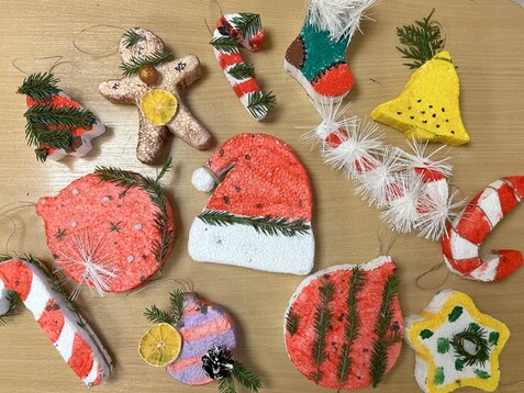 Dizaina un tehnoloģiju stundās 5. klases skolēni bija rūķīša lomā un veidoja Ziemassvētku rotājumus kombinētā tehnikā. Skolēni zīmēja skices, veidoja šablonus un grieza dekorus ar putuplasta griezēja palīdzību. Visus darbus apstrādāja ar smilšpapīru, izkrāsoja, pievienoja rakstus un dabas materiālus. Tagad skolēnu darbi rotās eglītes mājās un radīs svētku noskaņojumu.