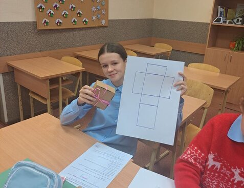 17. decembrī 5. klases skolēni piedalījās praktiskā matemātikas stundā, kurā viņi izzināja, kā aprēķināt taisnstūra paralēlskaldņa pilnas virsmas laukumu. Skolotājas Olgas Kaminskas vadībā skolēni izvirzīja versijas, kā to aprēķināt.