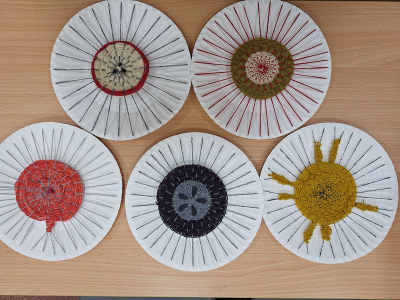7.klases plūsmas skolēni dizaina un tehnoloģiju stundās veido dekorus, izmantojot saules pinuma tehniku mūsdienu interpretācijā.