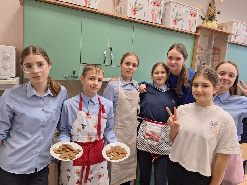 7.klases plūsmas skolēni dizainā un tehnoloģiju stundās gatavoja kraukšķīgas piparkūkas.