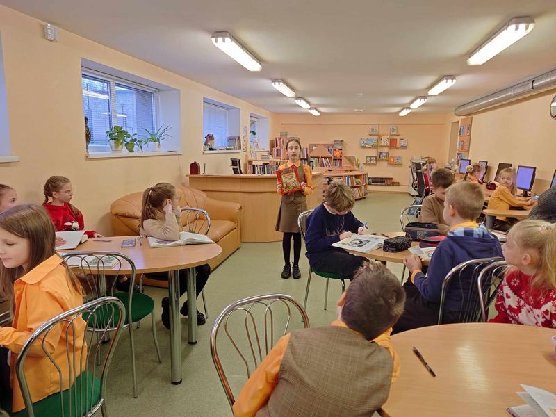 Nodarbības vadīja skolotāja Tatjana Petroviča un bibliotekāre Jeļena Kolpakova.