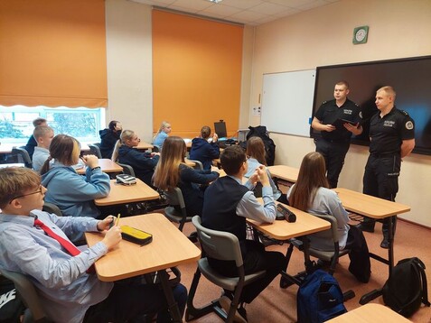 4. un 6. decembrī klases stundas laikā 8. plūsmai notika tikšanās ar Daugavpils pilsētas pašvaldības policijas pārstāvjiem, kuras mērķis ir stiprināt skolēnu zināšanas par drošību un likumu ievērošanu, kā arī veicināt viņu pilsonisko atbildību un izpratni par sabiedrības drošības jautājumiem. Skolēni tika iepazīstināti ar Bērnu tiesību aizsardzības likumu. Policijas pārstāvji atgādināja skolēniem par viņu pienākumiem, tika aktualizēti iekšējās kārtības noteikumi skolas telpās un sabiedriskās vietās. Tikšanās laikā notika saruna par nepilngadīgo atbildību, pārkāpumiem un to sekām, kas palīdzēja skolēniem labāk izprast savas rīcības nozīmi un sekas, stiprinot izpratni par atbildību un apzinātu lēmumu pieņemšanu.