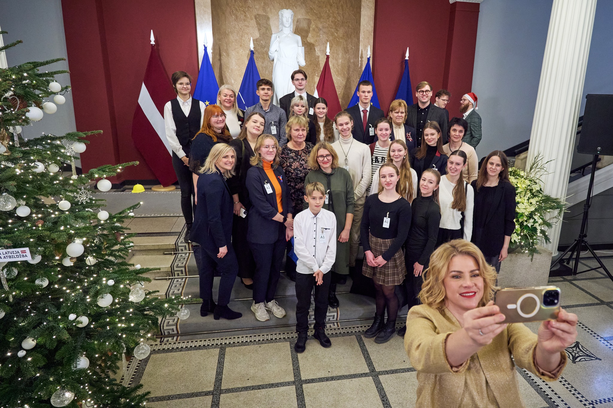 2024.gada 10. decembrī Rīgā Ministru kabineta ēkā virmoja svētku noskaņa. Pirms valdības sēdes tika iedegtā ministru kabineta Ziemassvētku eglīte, pasākumā piedalījās ministri, Valsts kancelejas darbinieki un jaunieši, eseju konkursa "Es un ES" laureāti. To vidū bija arī 11.klases skolniece Kristīne Leitāne un vēstures skolotāja Larisa Želve.