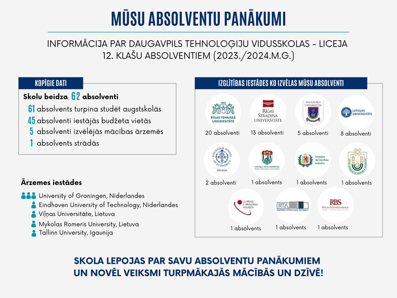 Ir izveidota infografika par Tehnoloģiju vidusskolas – liceja absolventiem (2023./2024.m.g.)