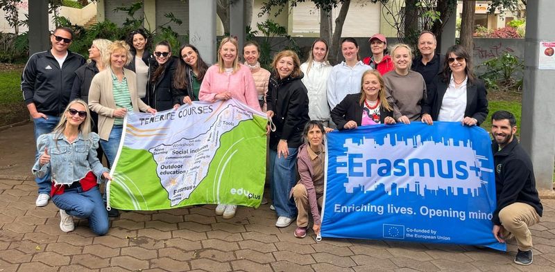 Erasmus+ projekta “Vēro! Izzini! Pielieto!” ietvaros matemātikas, dabaszinību un sociālo zinību skolotājas Jeļena Ovčiņņikova un Margarita Stankeviča un angļu un spāņu valodas skolotāja Svetlana Želneronoka piedalījās kursos “Āra izglītība, lai audzinātu apkārtējās vides un sociālās iekļaušanās vērtības”, Tenerifē, Spānijā, no 13. līdz 17. aprīlim. Piecu dienu laikā skolotājas kopā ar kolēģiem no Vācijas, Portugāles, Maķedonijas, Grieķijas un Slovākijas praksē iepazinās ar piemēriem un mācījās paņēmienus, kā var organizēt āra aktivitātes.