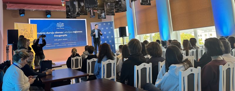 6. oktobrī Daugavpils Vienības namā notika Ārlietu ministrijas pārstāvju tikšanās ar Daugavpils skolu audzēkņiem. Pasākumā piedalījās 10.b, 11.a un 11.b klases skolēni kopā ar pedagogu-karjeras konsultantu Jeļenu Giņko. Ar jauniešiem sarunājās speciālo uzdevumu vēstnieks Juris Poikāns, Divpusējo attiecību direkcijas vadītāja Katarina Plātere un Konsulārās palīdzības nodaļas padomniece Dace Veidmane-Pundure.