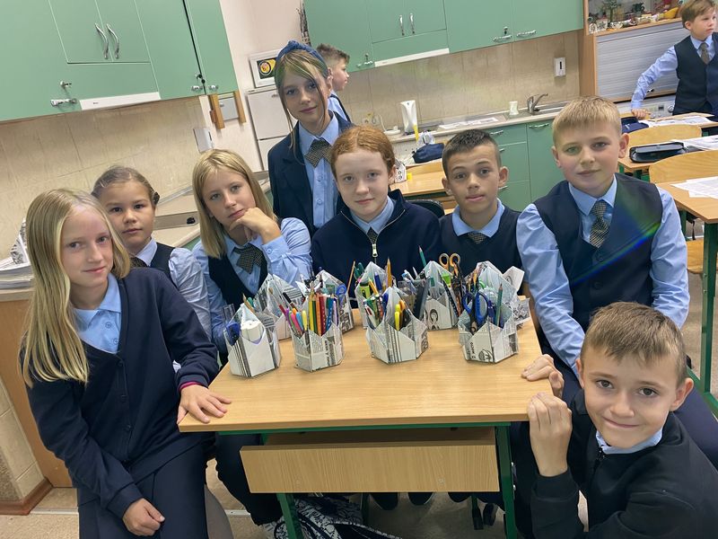 Dizaina un tehnoloģiju stundās 5.klases skolēni iemācījās no atkārtoti lietojamiem materiāliem veidot dažādus objektus. No vecām avīzēm skolēni origami tehnikā izgatavoja rakstāmpiederumu turētāju, no vecām dzijām un apģērbiem, saglabājot tautas amatniecības kultūrvēsturiskās tradīcijas, izveidoja salvetes un grīdas paklājus.