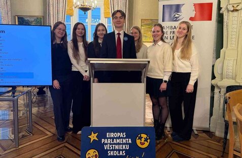 8. decembrī 11. klases skolēniem bija īpaša iespēja piedalīties seminārā Francijas vēstniecībā Latvijā. Pasākuma laikā jaunieši prezentēja savas politiskās idejas un sarunājās ar Francijas vēstnieku Latvijā Manuelu Lafonu Rapnuiju, kā arī klausījās Annes Metes Vestergārdas uzstāšanos par jauniešu nozīmi Eiropas nākotnē.