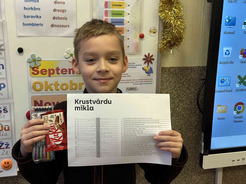 Sveicam Maksimu Jevsejevu (2.kl.), kurš pirmais pareizi atminēja krustvārdu mīklu!