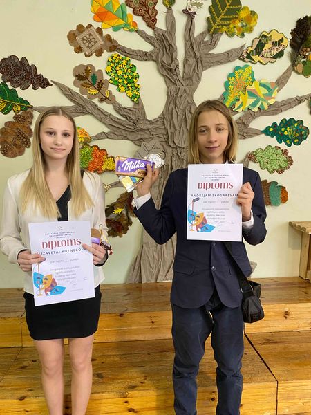 - 1.vieta - Jelizaveta Kuzņecova (8.kl.), Andrejs Skogorevs (7.kl.)